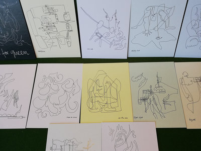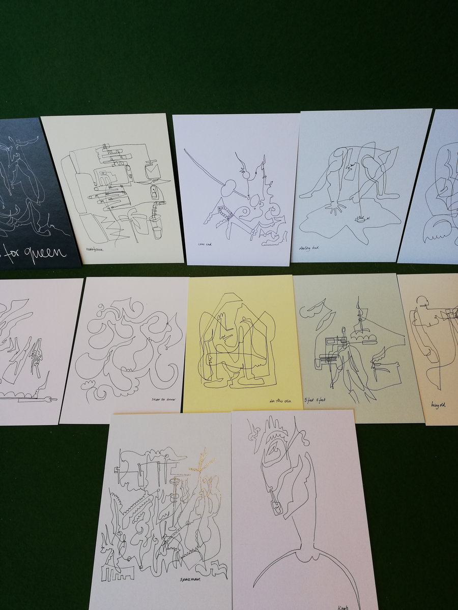 Gil Machado, who designed the album artwork, made individual illustrations for each song on the album. Calverts Printers in Hackney have turned them into this beautiful set of postcards.